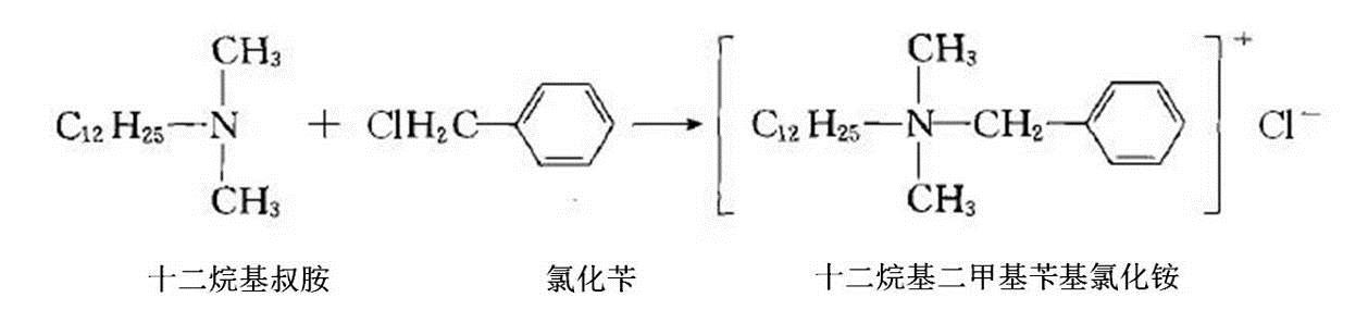 首先(xiān)在反應釜(fu)中加入定(dìng)量十二烷(wan)基叔胺,反(fan)應釜夾套(tào)通入蒸汽(qi)預熱至80℃,按(àn)投料比例(li)滴加氯化(hua)苄(沸點179.4℃),繼(ji)續升溫至(zhi)120℃,反應約3h;反(fan)應結束後(hou),夾套通入(ru)循環水冷(lěng)卻水溫度(dù)降至常溫(wen),加入水,并(bìng)攪拌均勻(yun)。