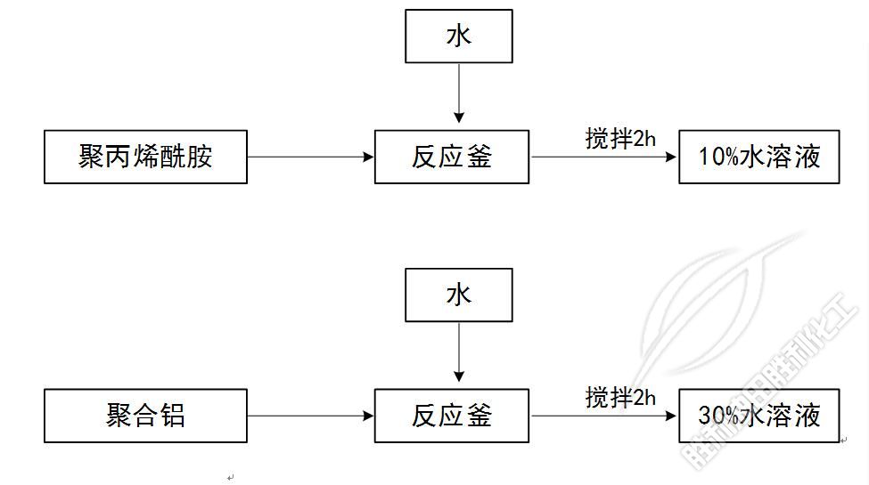 該(gāi)産品工藝(yì)比較簡單(dan),主要爲複(fu)配,将外購(gou)的聚丙烯(xī)酰胺配制(zhi)成一定濃(nong)度水溶液(yè),将聚合鋁(lü)配制成一(yī)定濃度水(shui)溶液。