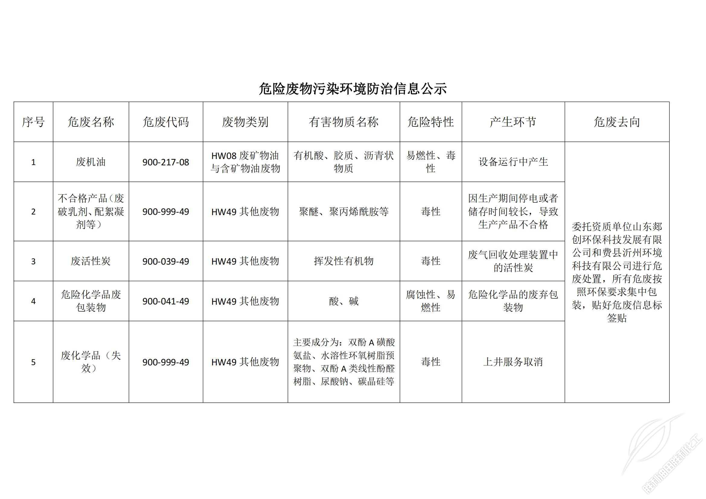 危險(xiǎn)廢物污染(ran)環境防治(zhi)信息公示(shì)